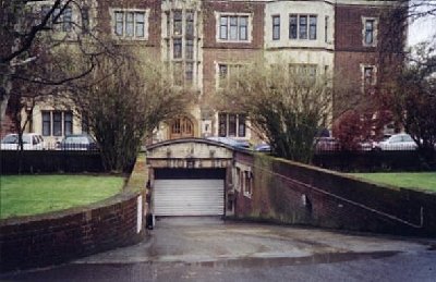 driving through the barriers of an underground car park (Cumberland Gate entrance). He walks down a