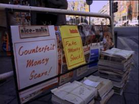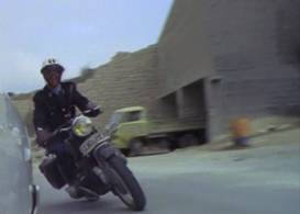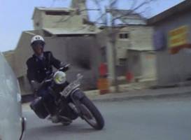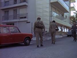 After Carlo and Nico are waved through the scene of an accident, a policeman notices the loose licence plate. |