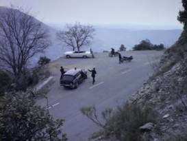 Route de Caussols, Gourdon Alec is caught by the police as he tries to dump Carlo and Nico’s car with their bodies in the boot. |