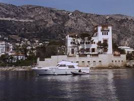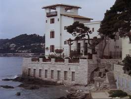 12 Av. Louise Bordes, Villefranche-sur-Mer, France The villa next-door to Dupont’s. Jill wants to look at the house, leaving ‘Lord Bicester’ to rest in the sun. When the coast is clear Tommy nips next-door. Jill watches from the balcony. |