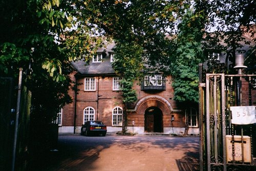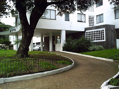 John Steed arrives in his Bentley at High Pines (Totteridge
