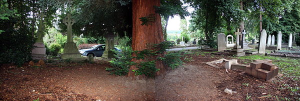 Jeff's car follows Hellingworth's car to Marty's graveyard and passes