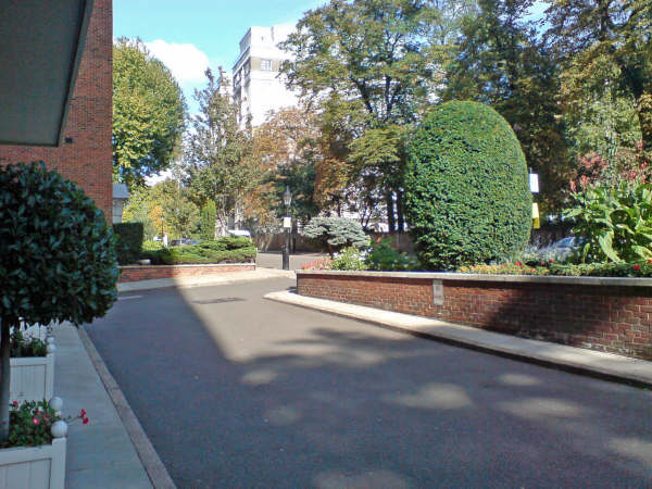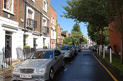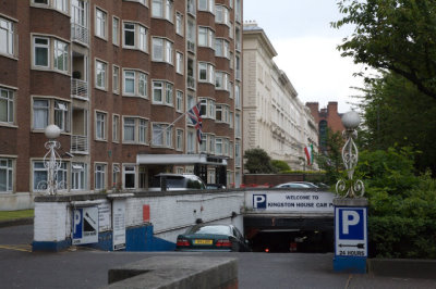 Richard reverse out of the basement and drive down Belgrave Mews West.