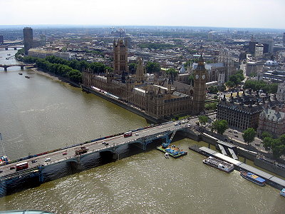 across the Thames at Big Ben and The Houses of Parliament from the