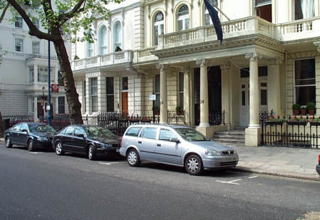 newspaper and takes a taxi along The Mall towards Hyde Park Comer,