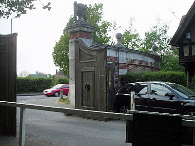 Cranmore House in his E-Type Jaguar. The gates are opened by the park