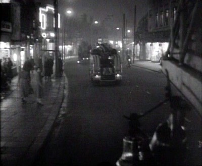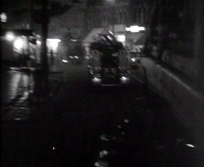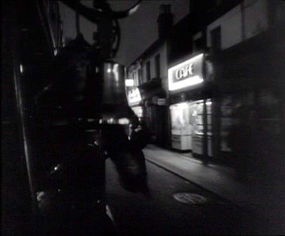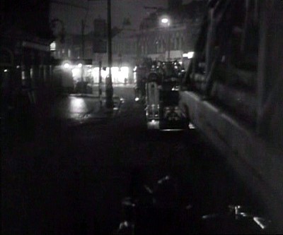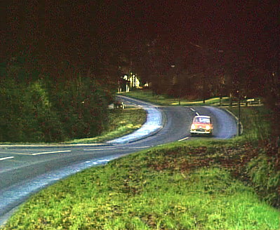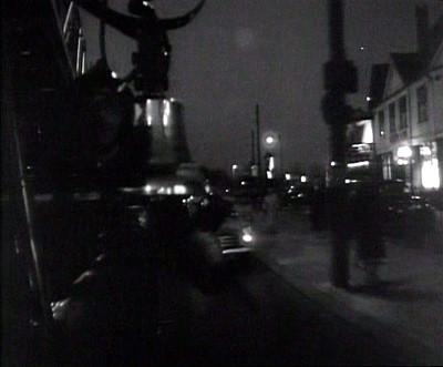 Mrs Peel can only watch as the mysterious light winds its way down the road.