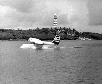 Hope Town Lighthouse, Hope Town, Bahamas -A flying boat takes off from Bimini for Nassau.