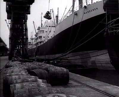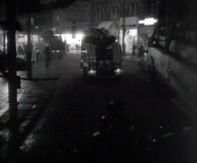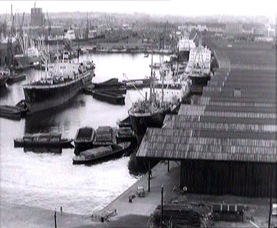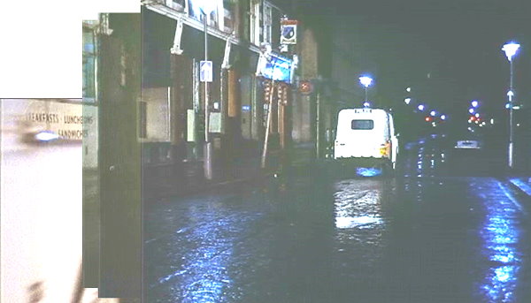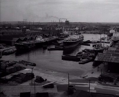 shot of docks as Police car ZB4 arrives at the Stone Warehouse looking for