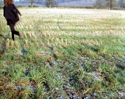 Mrs Peel (Diana Rigg) arrives at the farm looking for the strange light but as she investigates the light suddenly moves away.