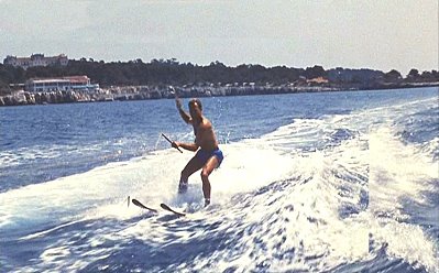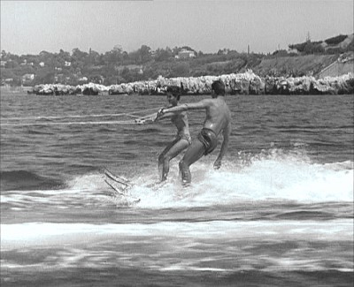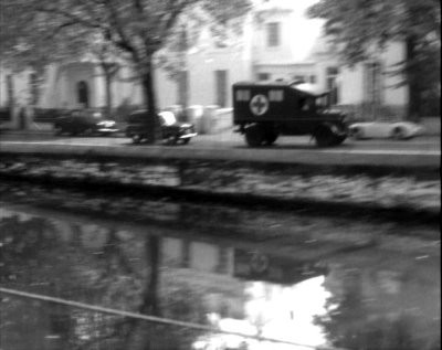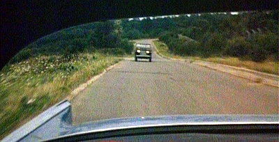 Frank Rocco (Robert Hutton) aboard along a riverside country road and