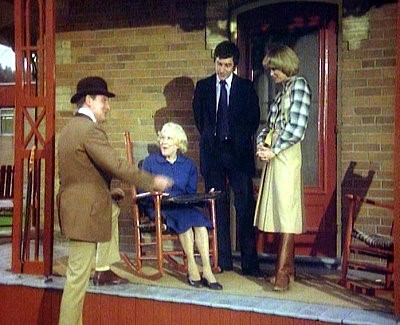 137 Woodbridge Avenue: Steed, Gambit and Purdey go to give the sad news about Emily to Miss Daly (Jane Mallet).
