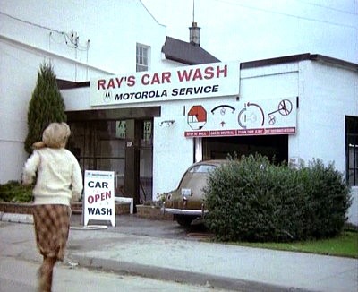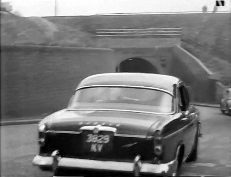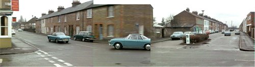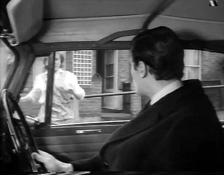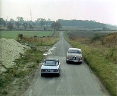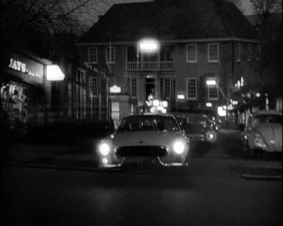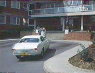 Elsree Way, Borehamwood: The civil servant (Patrick McGoohan) continues his journey in the Lotus (buildings in backround demolished and council offices built on the site).