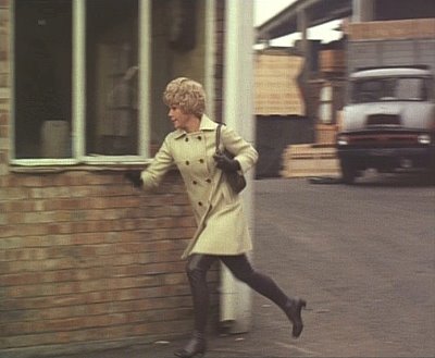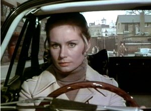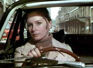 Wilton Street, SW1 - Elizabeth Saxon, Jeff's lawyer, has seen Kevin O'Malley leave the police station and decides to follow him in her Triumph.