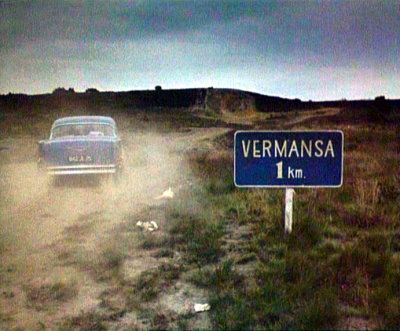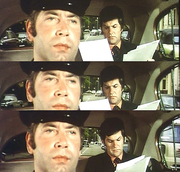 in his car. Potter radios in to confirm Number 6's destination (back projection