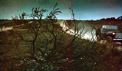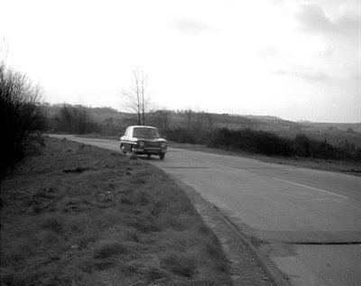 MGB tails Arkin (Peter Elliott) driving a MG 110 to a secluded wood south of