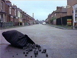 makes his way to Patsy Butler’s flat (motorcycle turning is Kilburn High