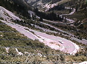 Hochalpenstraße, Vorarlberg, Austria: Potter drives up a steep