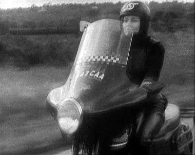Unknown 2: During the point-to-point suggested by Steed, Mrs. Gale’s (Honor Blackman) motorbike breaks down 7 miles from Vernon.