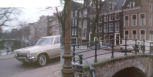 Keizersgracht/Reguliersgracht, Amsterdam - Malone and Corbett follow Simon Templar and Mable and Tom Upwater as through Amsterdam to their meeting with the jeweller. Simon is soon made aware of the car following them over the canal bridges.
