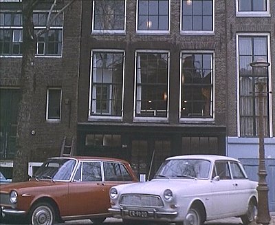 Prinsengracht 267, Amsterdam - Simon Templar takes Mable Upwater for a guided tour of the canals of Amsterdam. The guide on the boat points out Ann Frank's house.