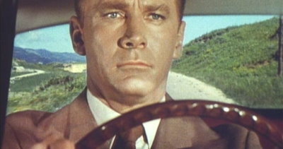 in his Citroen towards the farm where he is to meet Seldon's daughter.