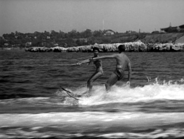 of water skiers (water skiers pass and probably set off from Hotel
