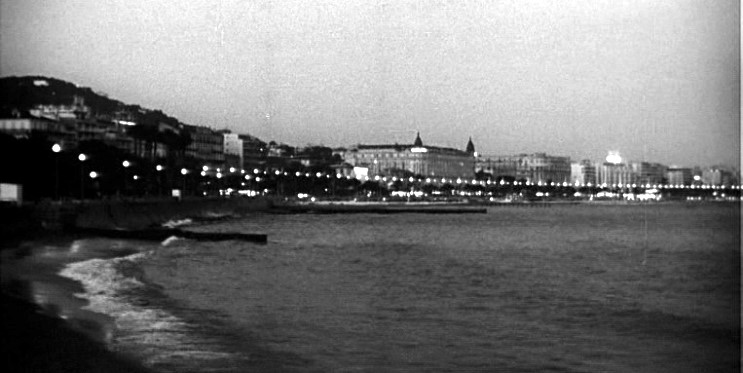 - Establishing shot for the South of France resort at night.