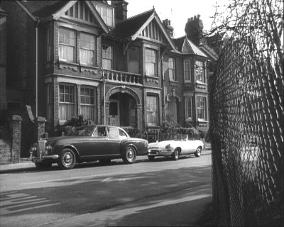 (Petra Davies) looks across the road to Tony (Dave Prowse) from the