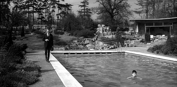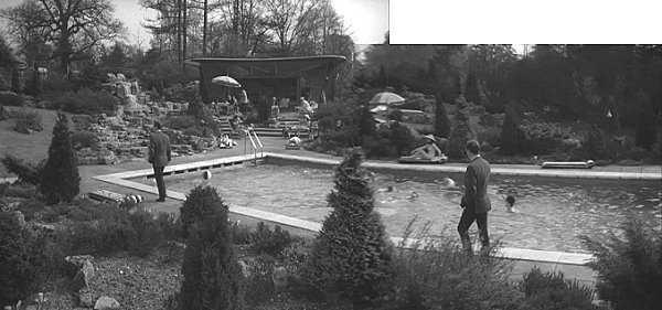 Kingswood, Clay Hill, Enfield, Middlesex – John Drake (Patrick McGoohan) arrives at the Prague home of Milos Kaldor (Alex Scott) for a swimming party (swimming pool has been filled in). Here he is introduced to the beautiful Ira (Nadja Regin). The following day he returns to ask a favour of his new friend.