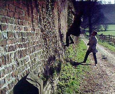 Unknown 2 - Malone (T.P. McKenna) and Corbett (Frederick Abbott) attempt to break into the grounds of Cranmore House by climbing a high wall, but they are interrupted by the appearance of Jeremy Cranmore in his Lotus. After attempting to steal the Angel's Eye diamond they are chased from the house by Simon Templar (Roger Moore) and Jeremy Cranmore (Donald Pickering), but they fail to prevent Malone and Corbett climbing the wall and making their getaway.