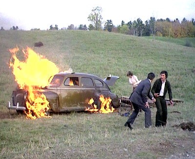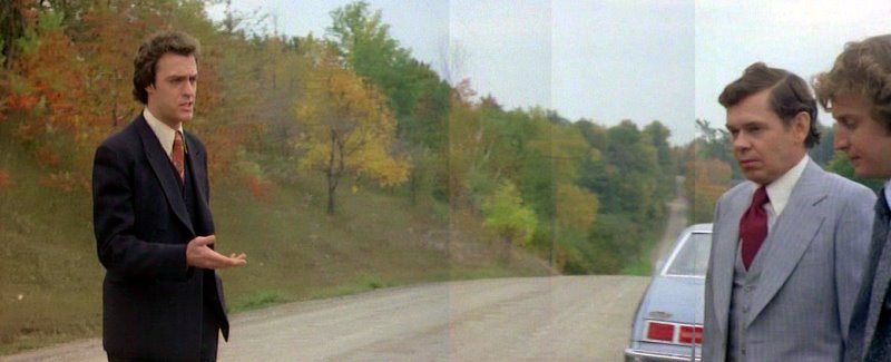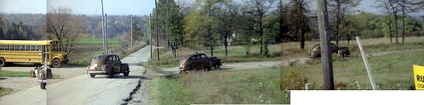Bad guys meet on some rural road discussing plan: top of