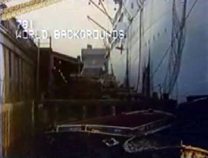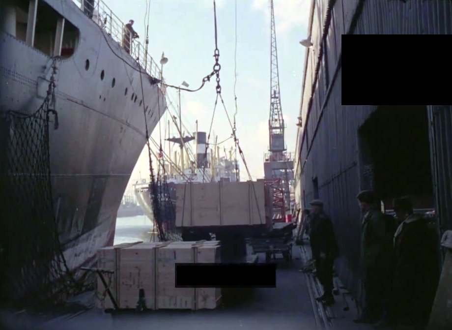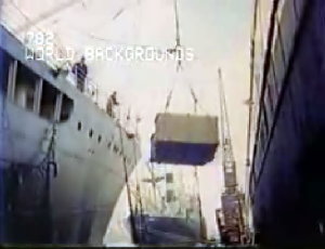 Unknown 4: The crate carrying Number 6 and Nadia is loaded onto a boat in Dazing (World Backgrounds 782).