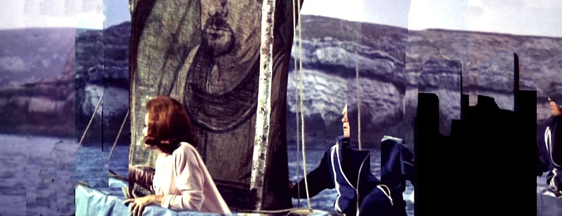 Number 6 and Nadia escape from the village in a jerry-rigged boat. They