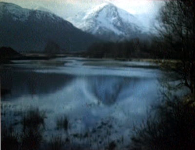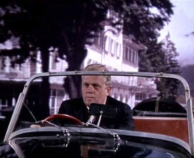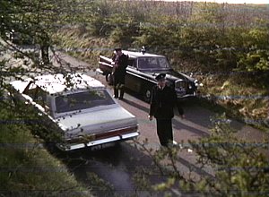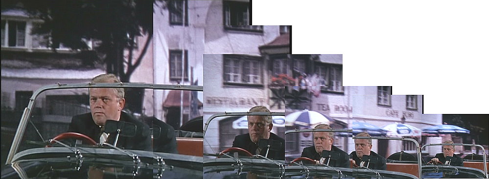 Furka Pass, Uri, Switzerland: Number 6 makes his way through the mountians to Kandersfelt in his Lotus, followed by Potter, to find Seltzman (footage from GOLDFINGER).