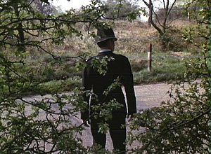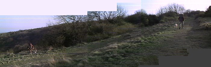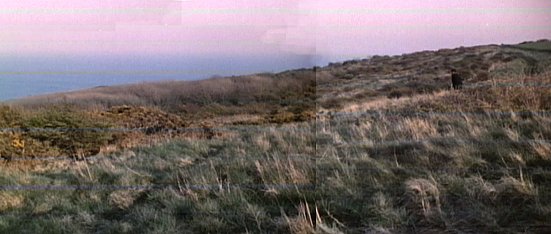Folkestone, South Downs Way/Beachy Head: After being washed ashore the civil servant (Patrick McGoohan) climbs to the cliff top and meets a man with a dog (Larry Taylor). He follows the man to his camp and is later shown the way to the road.
