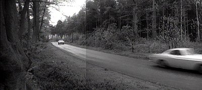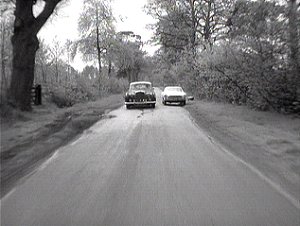 the blackmailer escapes on his motorcycle. Nigel gives chase in Simon’s Volvo.