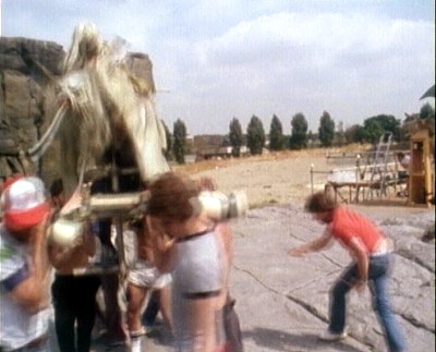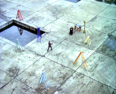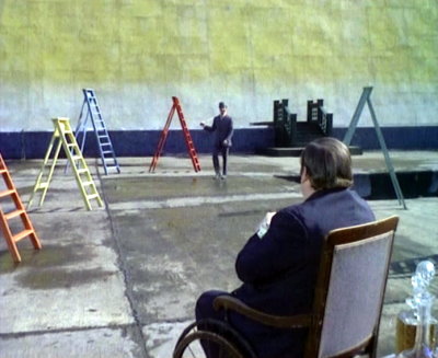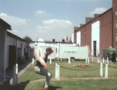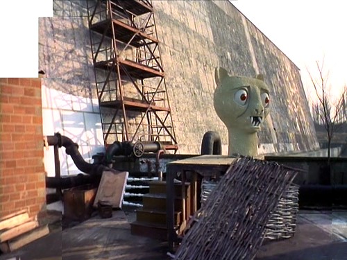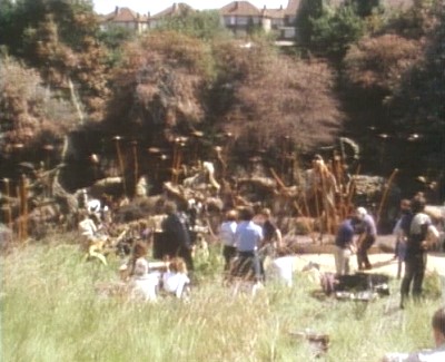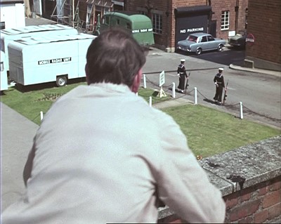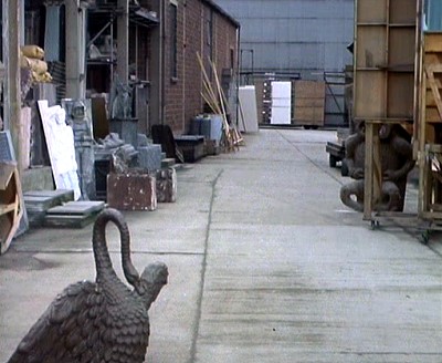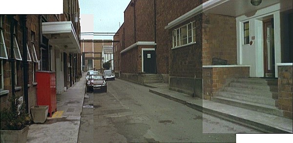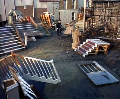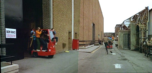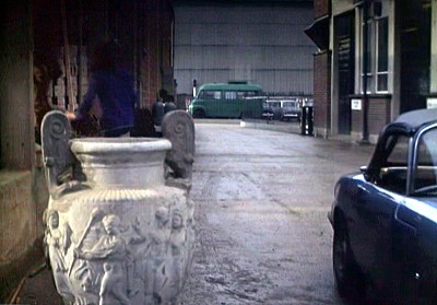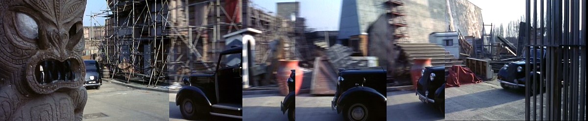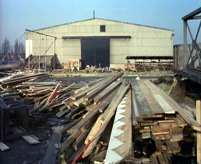 In first photo you can see part of the standing set with the Scene Docks (F) behind. In the last photos you can see the roof of the Maintenance Building above the Workshop (G). As well as a wooden statue seen in THE AVENGERS: A Touch of Brimstone)