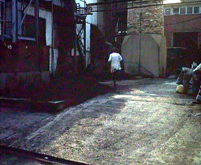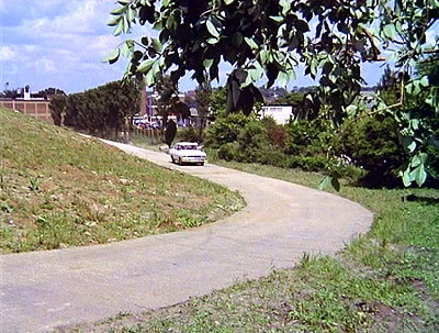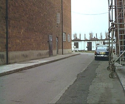 Back of H- Maintenance Building, the road rises steeply between Stage 9 and the H - Maintenance Building up to the backlot.