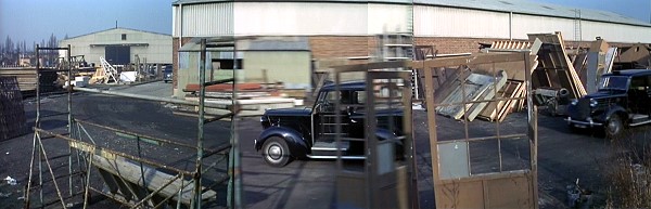 A panorama with Stage 9 far left looking over the industrial units at the far eastern corner of the back lot with the Revell offices on Maxwell Road, the last three storey red brick building on the right