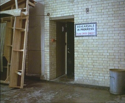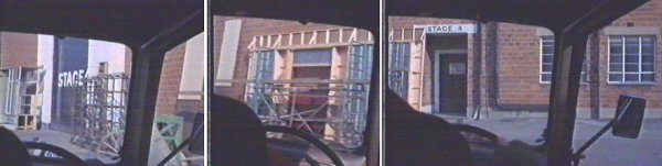 Jack Nicholson makes his way down from his dressing room (the windows lit in the above photos) past the entrance to Stage 3 and on to Stage 4.