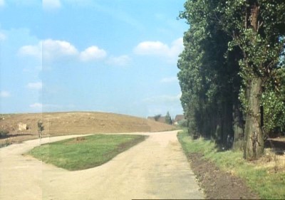 The road between Plasterers Shop (G) and Storage Buildings (F) looking from the back of Stage 6.