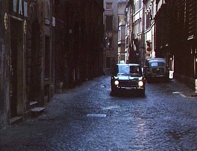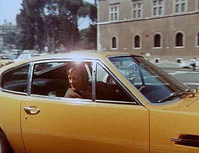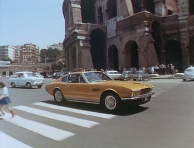 Brett (Roger Moore) jaunts around Rome driving his Aston Martin to