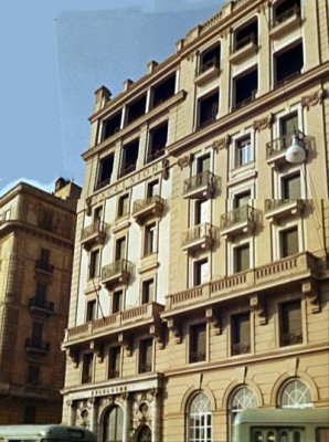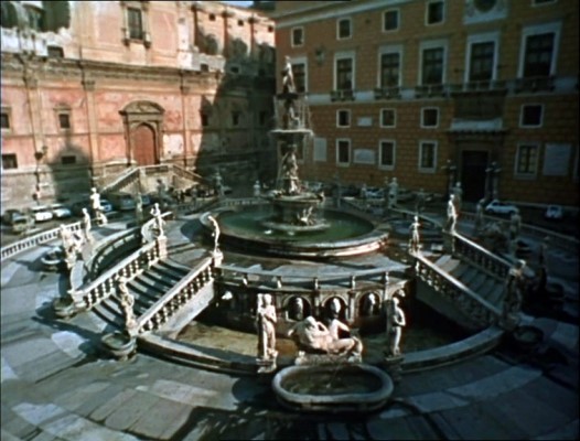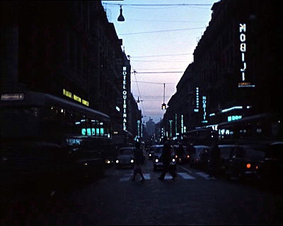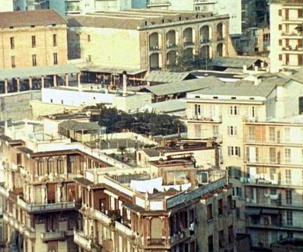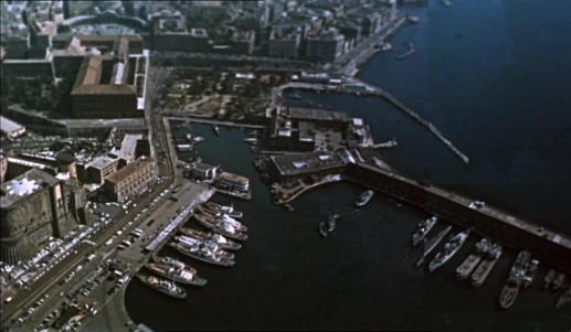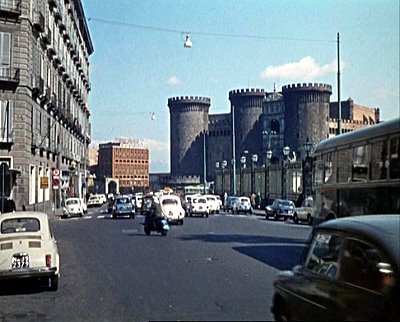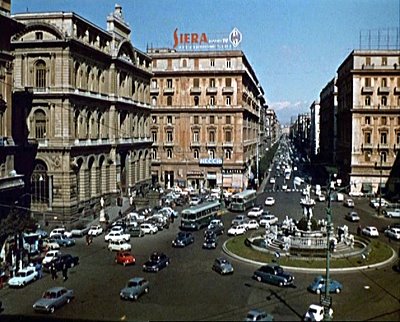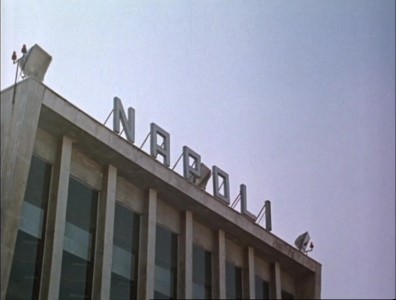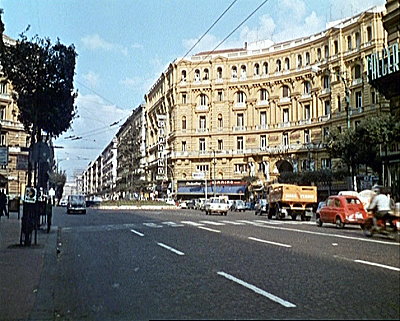 his way back to his hotel (World Backgrounds 7575). Later Simon is driven to the airport (through Piazza Carlo III with back projection of Piazza Vittoria) and