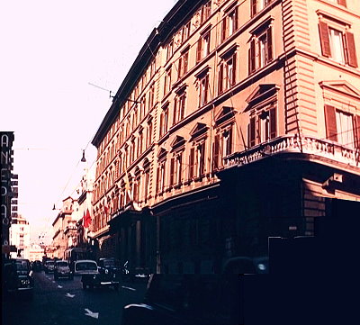 Pinciana Gate (Aurelian wall), seen at the bottom of the street.)