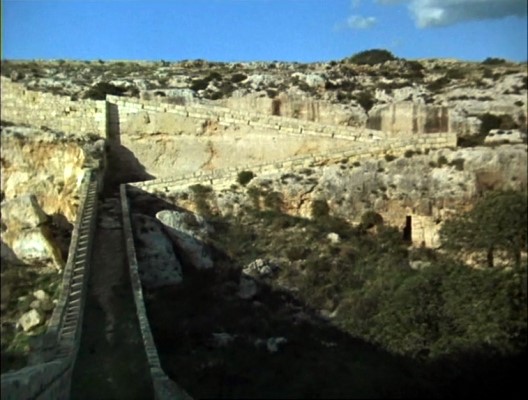 is chased by gunmen (Wied Busa Battery, Triq Il-Marfa).